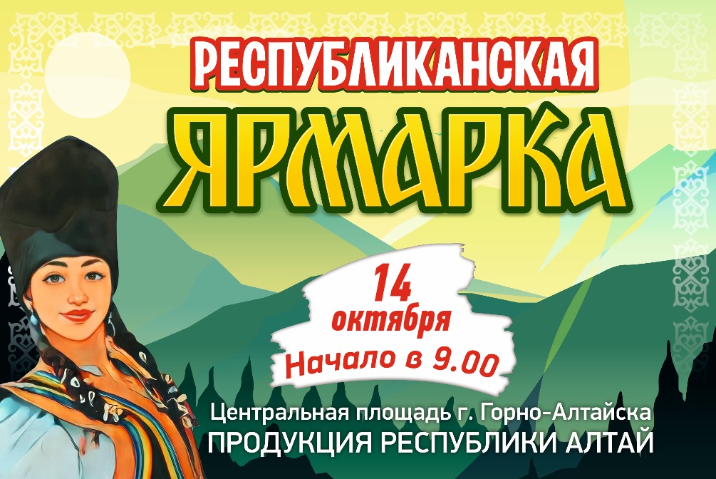 14 октября 2023 года с 9:00 до 15:00 часов на центральной площади г. Горно-Алтайска состоится республиканская ярмарка.