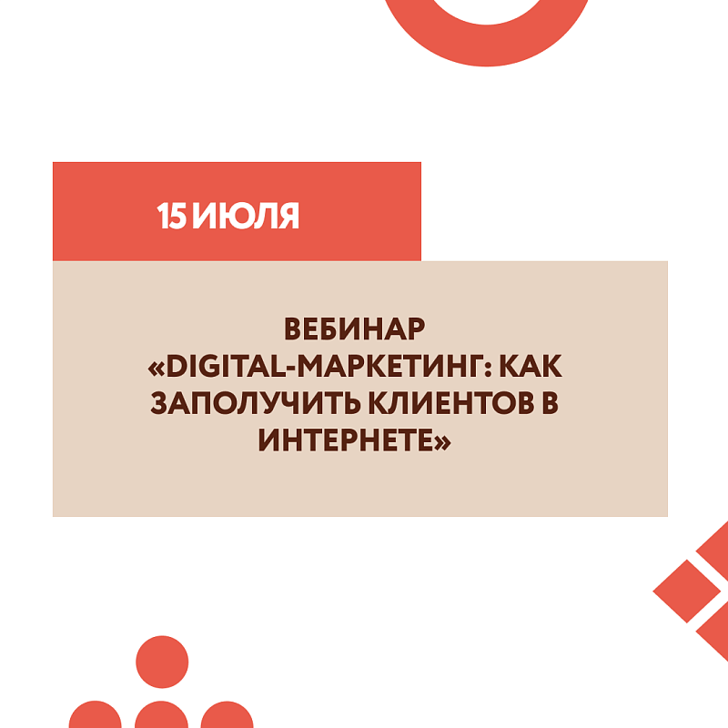 15 июля 2021 года Минэкономразвития России совместно с Корпорацией «Синергия» проведут вебинар «Digital-маркетинг: как заполучить клиентов в интернете».