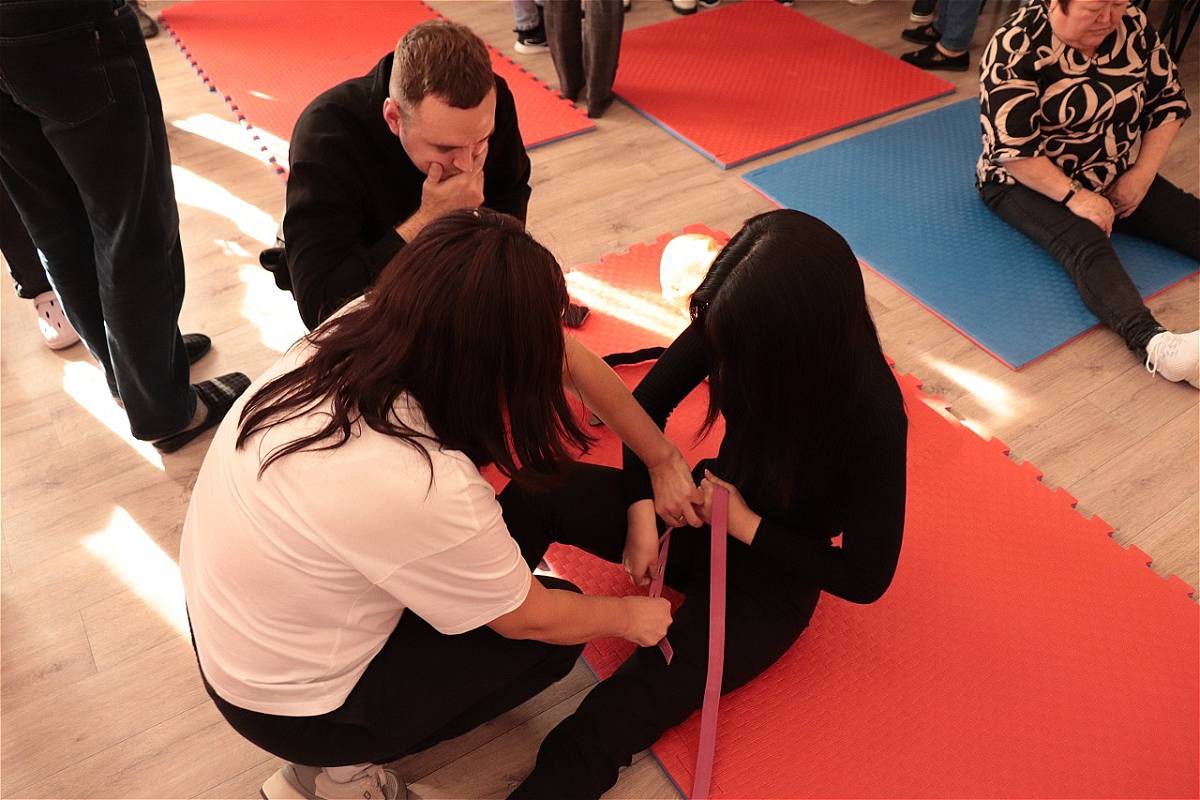 Коллектив министерства при поддержке заместителя директора по учебно-практической работе Медицинского колледжа Татьяны Тужеметовой освоили теоретическую часть и на практике отработали комплекс знаний и навыков по оказанию первой медпомощи, самопомощи и взаимопомощи при травмах, ранениях и несчастных случаях, правила транспортировки пострадавших.