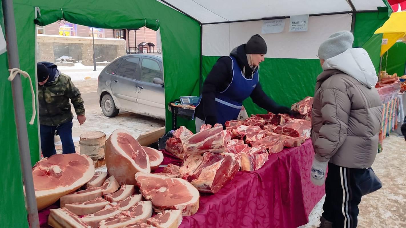 Сельхозтоваропроизводители Алтайского края, Новосибирской и Кемеровской областей представили на ярмарке свежемороженую рыбу, мясо кур, уток и индейки, мясные деликатесы из птицы, кондитерские изделия, текстильные товары, постельное белье, чулочно-носочные, трикотажные изделия, швейные изделия, детские товары, сувенирную продукцию, валенки.
