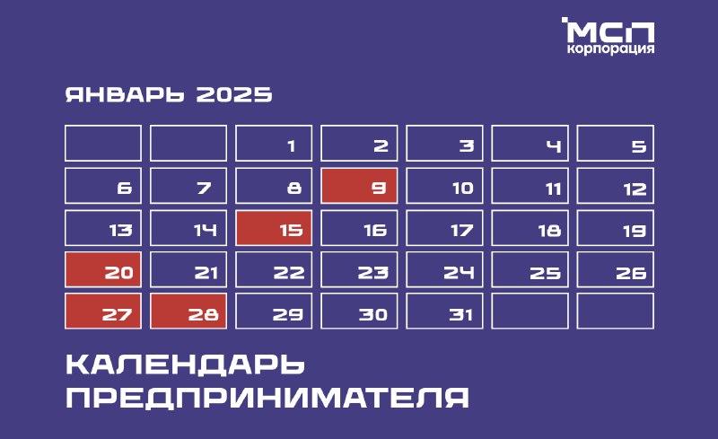 Календарь предпринимателя на январь 2025 года