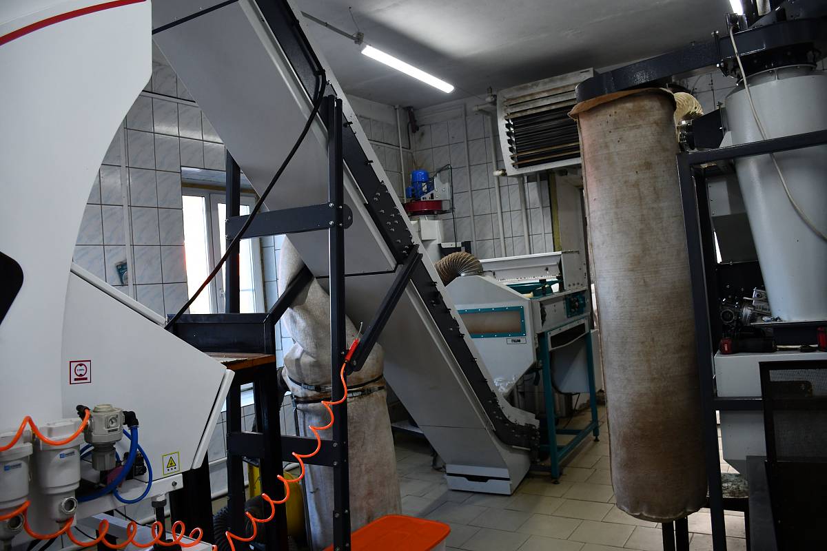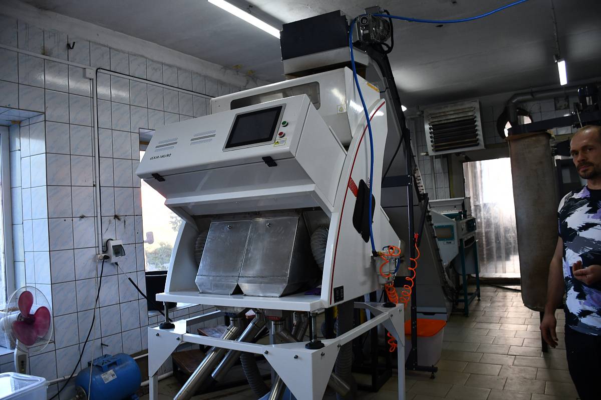 В прошлом году предприятие получило поддержку при приобретении фотосепаратора и нории к нему, а также гидравлического маслопресса. Высокоточный фотосепаратор осуществляет анализ цветовых характеристик каждой единицы продукта, что позволяет добиться в сортировке более 90% чистоты продукта на выходе. Таким образом, обеспечивается продукция наивысшего качества.