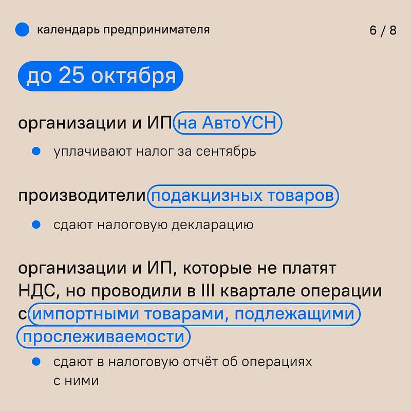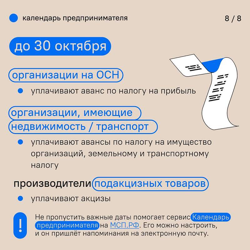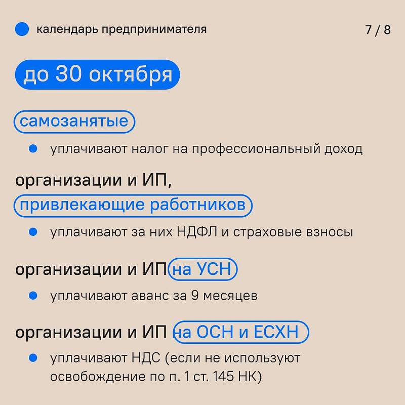 В октябре хлопот больше — добавляются платежи и отчёты за III квартал!