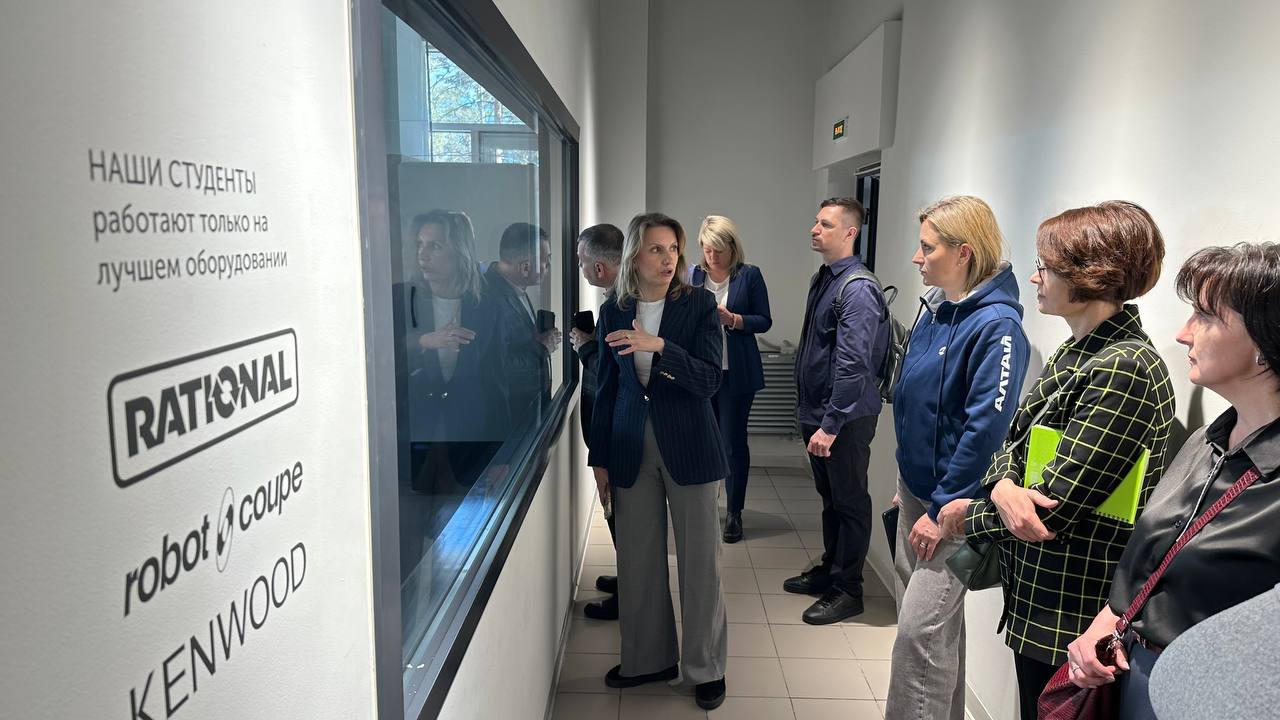 Практический опыт реализации проекта «Школа гастрономии СФУ» в системе среднего профессионального образования гости увидели на площадке Красноярского колледжа отраслевых технологий и предпринимательства, где директор колледжа Наталья Журова познакомила специалистов с успехами образовательной модели. Гости отметили особый подход к организации пространства и формата обучения для студентов – открытые кухни и дресс-код, мастер-классы от ведущих шеф-поваров мирового уровня, длительная практика во время учёбы.
