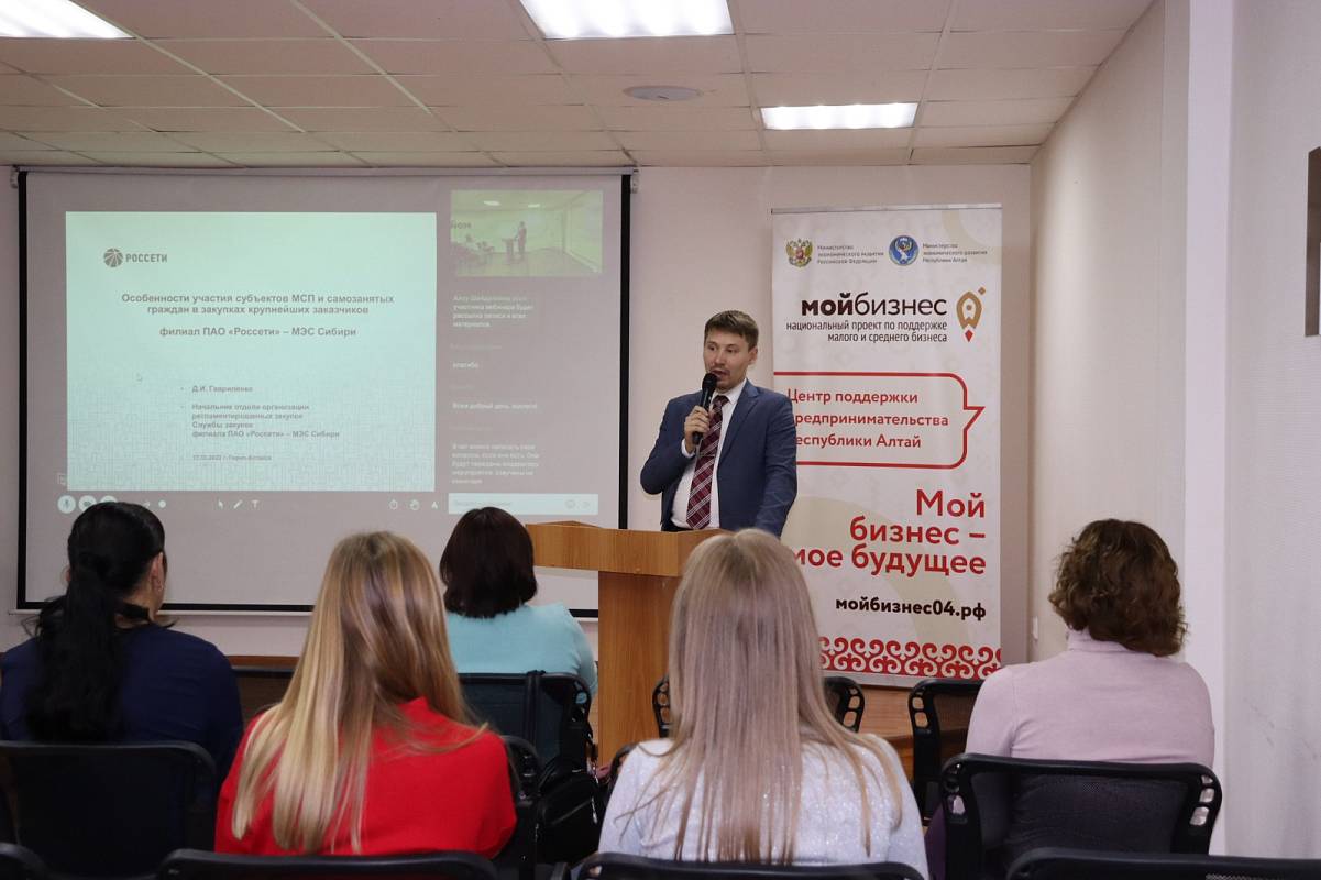 В 14:30 в конференц-зале Центра «Мой бизнес» Республики Алтай представители Корпорации МСП, Учебного центра АО «ТЭК-Торг», совместно с представителями крупнейших заказчиков и общественных объединений предпринимателей России начали Бизнес-семинар «Участие малого бизнеса и самозанятых граждан в закупках крупнейших заказчиков».